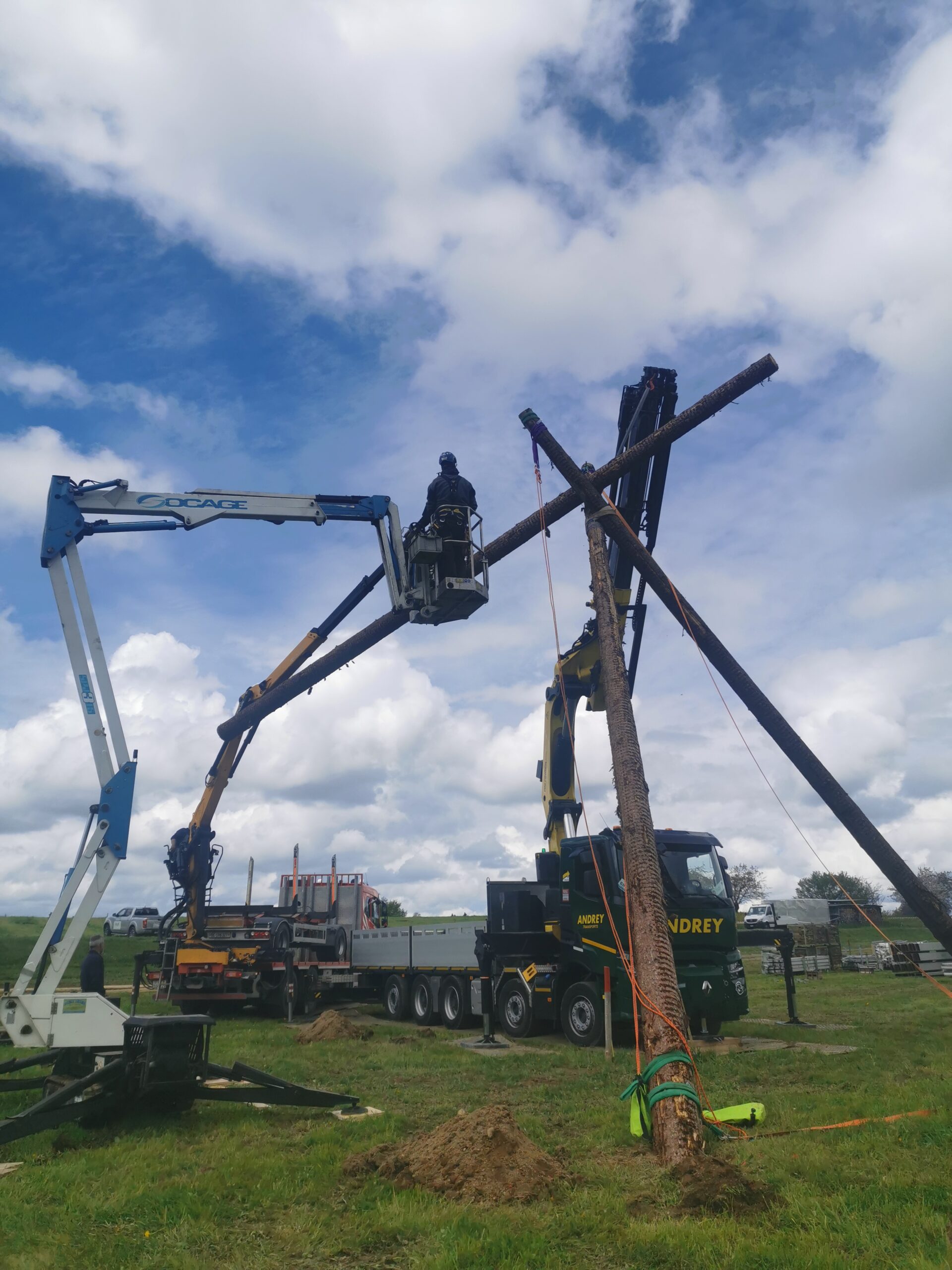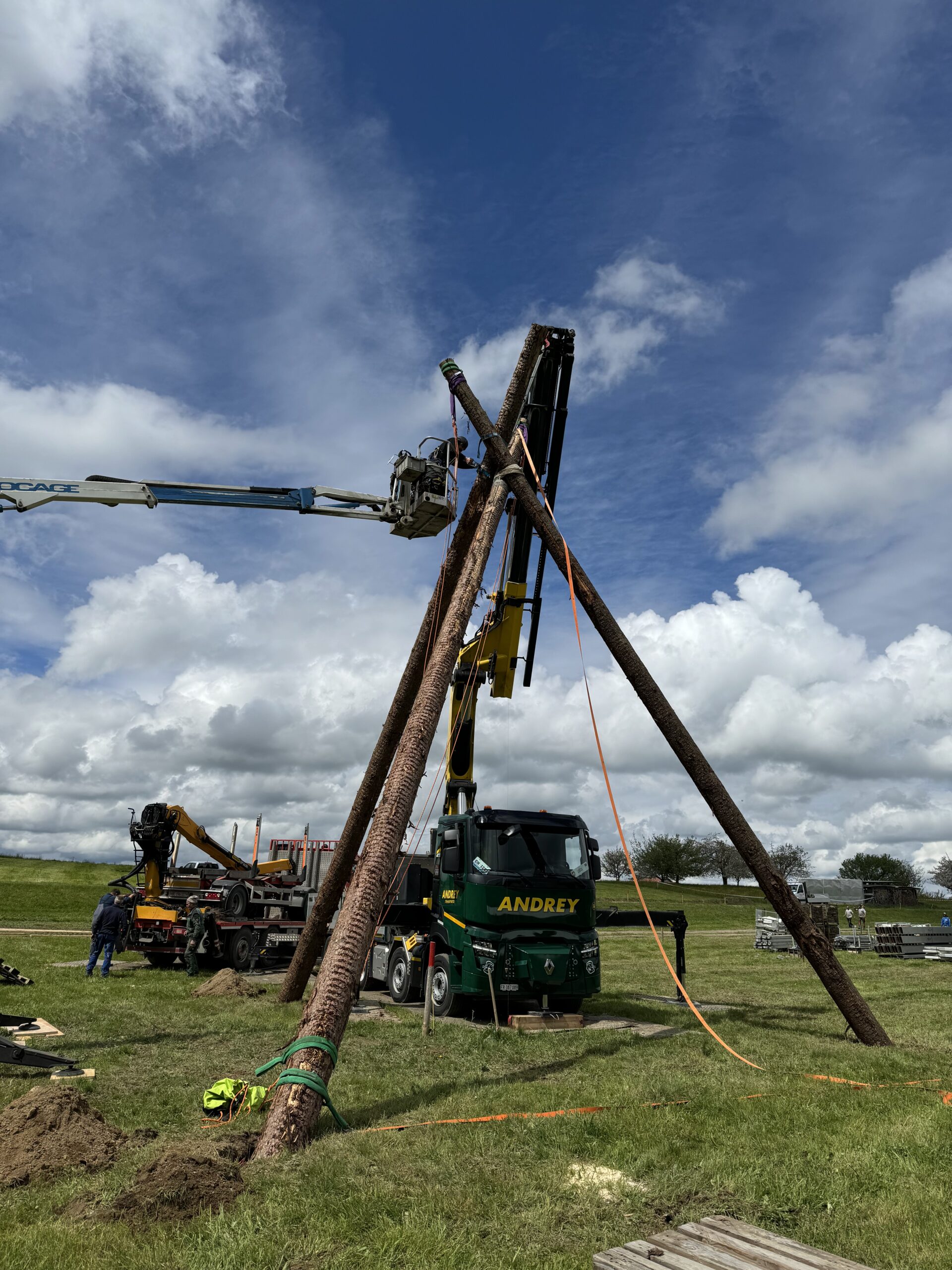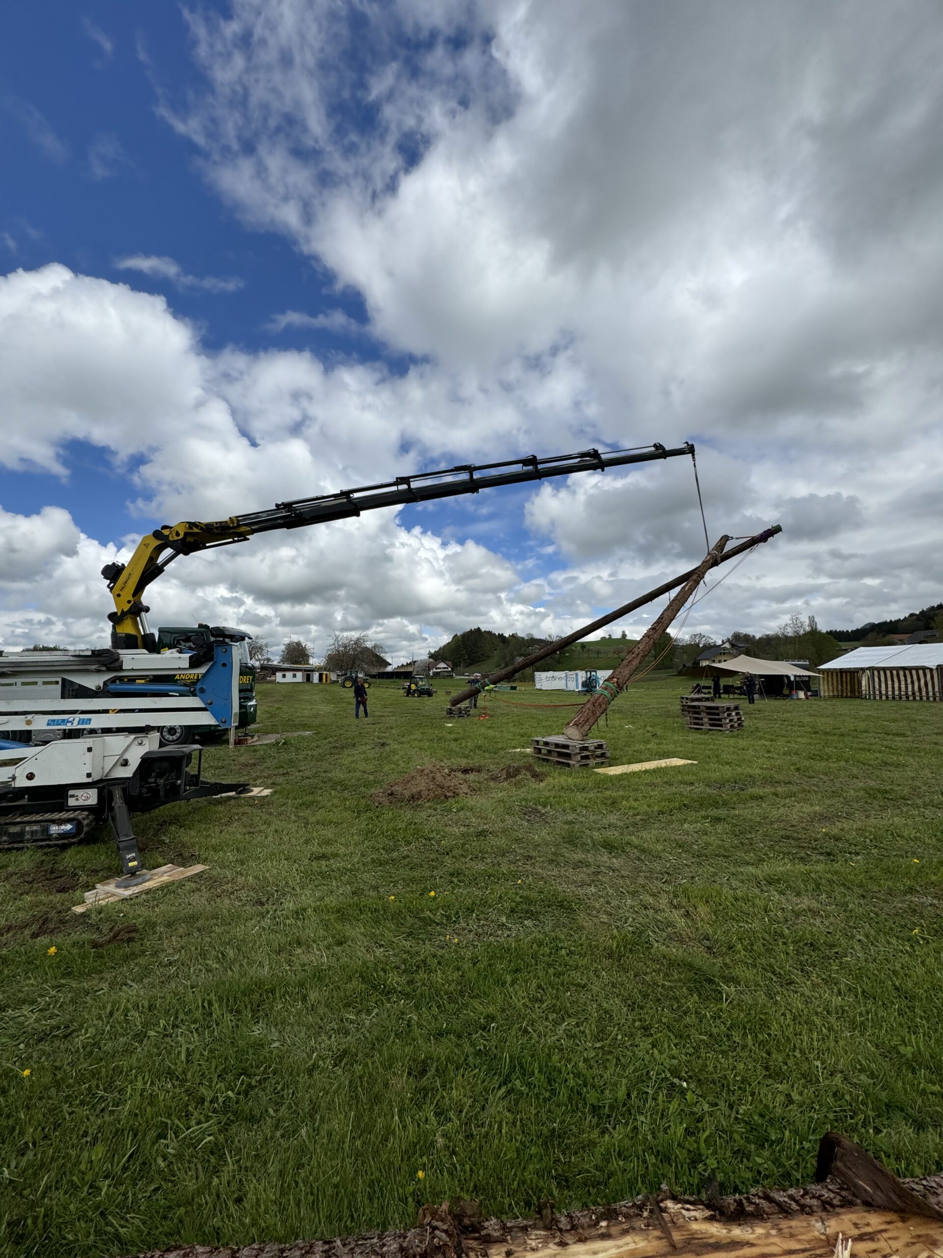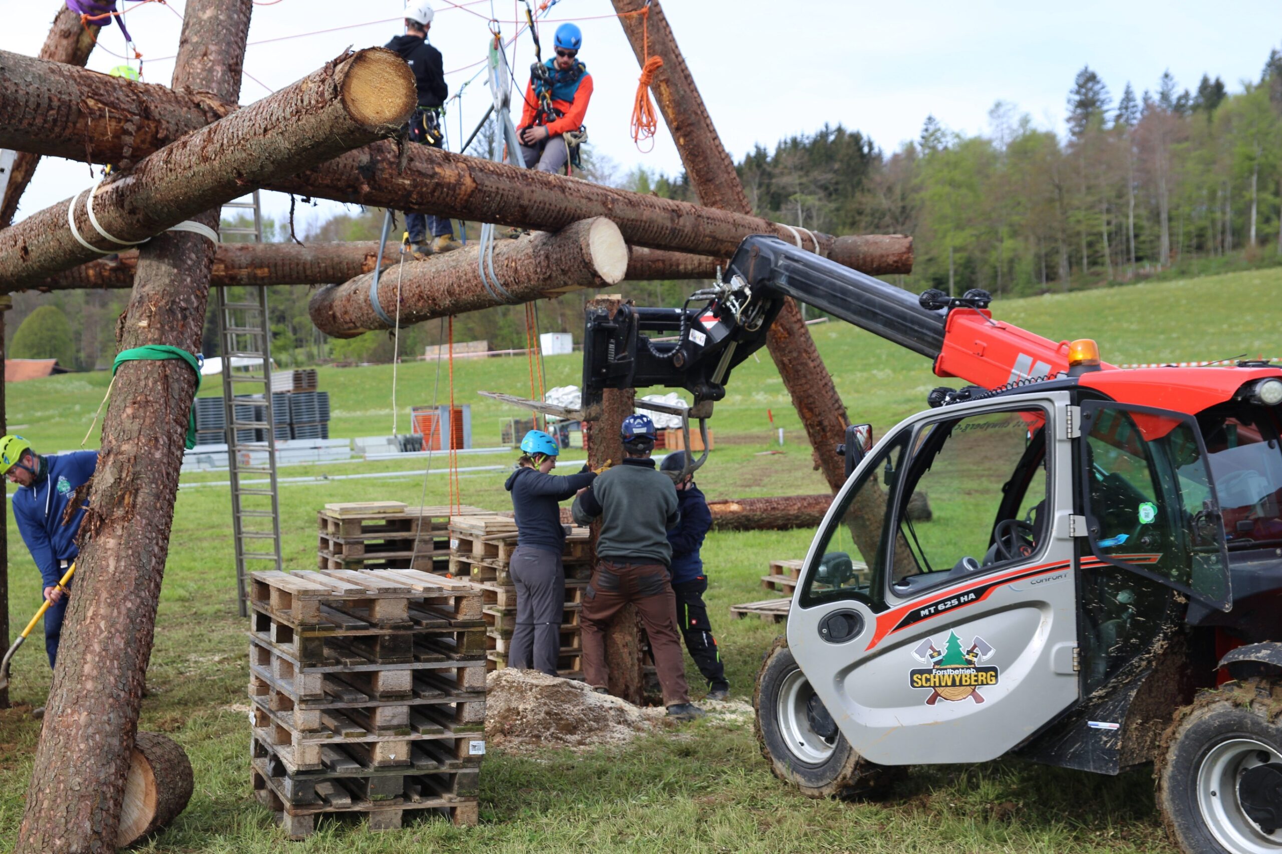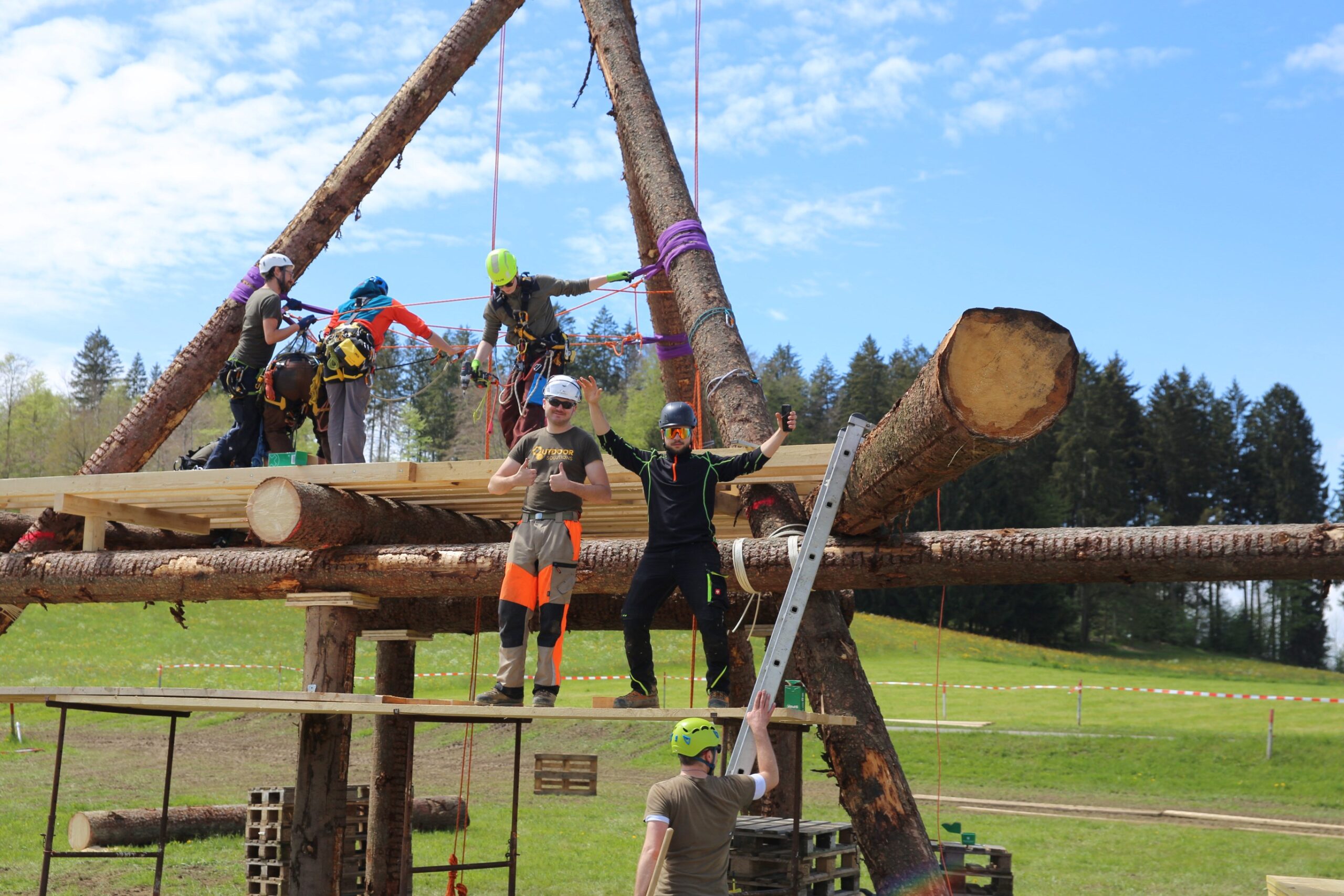 Das Feldschiessen Sense 2024 fand in Rechthalten FR statt und war für einige Kernmitglieder Heimspiel – entsprechend gross war die Begeisterung, lokal tätig zu sein. Vom OK gewünscht war ein Dreibock mit einer Plattform – und genau das planten wir und setzen es um. Der Bau sollte möglichst rustikal daherkommen, und daher war für uns klar, dass die Haupttragelemente aus Rundholz sein mussten.